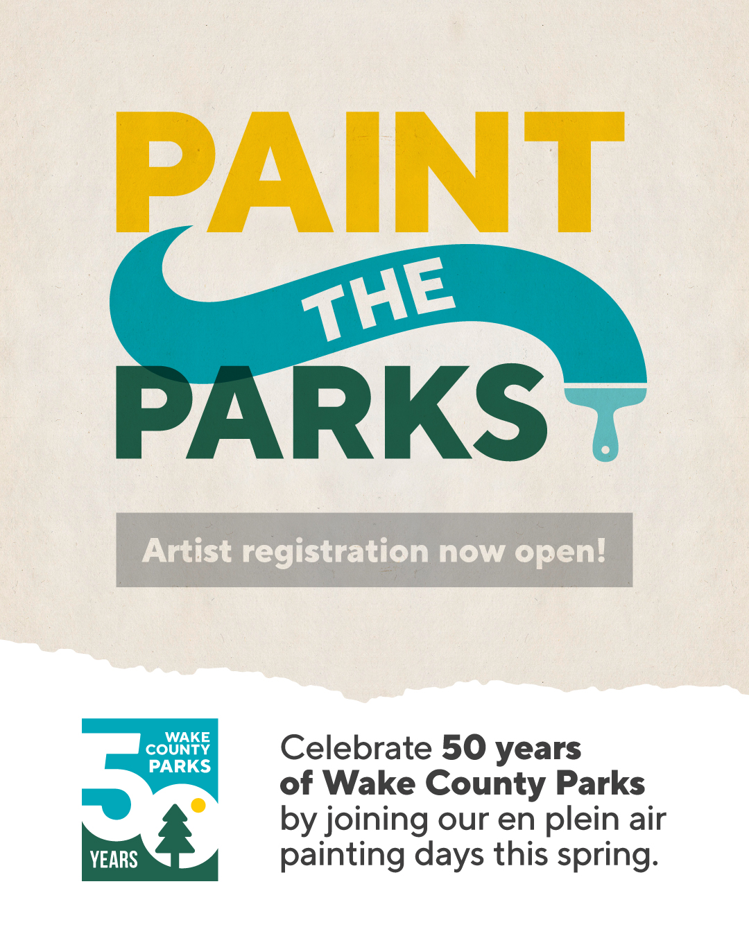 Artists are invited to come out to Beech Bluff County Park to participate in the Paint the Parks: En Plein Air Celebration in commemoration of the 50th anniversary of Wake County’s Park, Recreation and Open Space system! Artists can paint anywhere in the park (excluding indoor spaces, the playground, and non-public spaces) from park opening to 30 minutes before closing, creating a piece that celebrates its unique features and beauty. The maximum canvas size for each painting is 16” width x 20” height, but smaller sizes are also welcome. Each artist may submit one painting to the traveling art exhibition* and must drop off their artwork at Beech Bluff County Park by June 15th to be considered. The traveling exhibition will move to different Wake County Parks from July to December. Please note that artists must bring and use their own supplies and set up in a location that does not block access to any facilities.